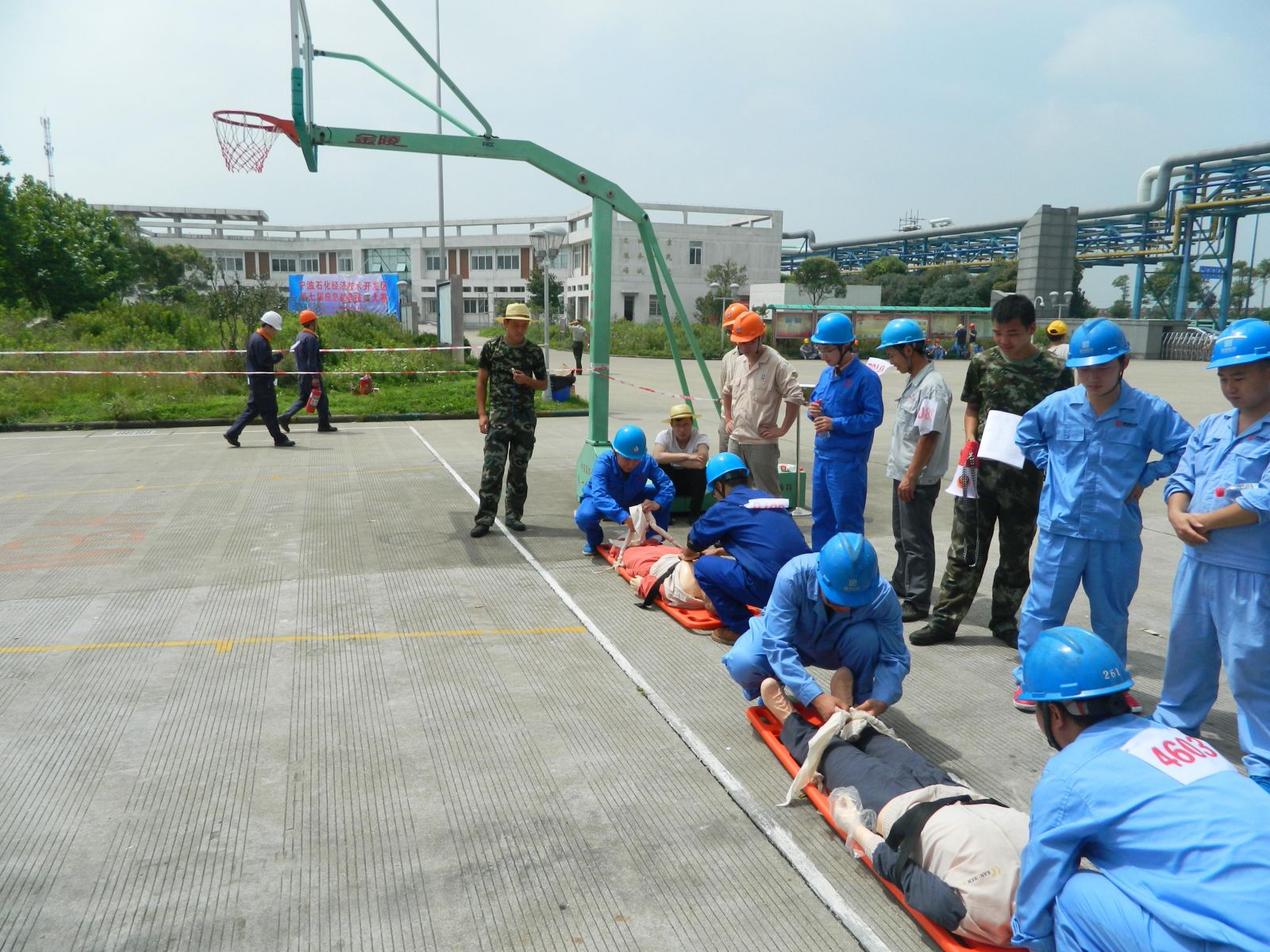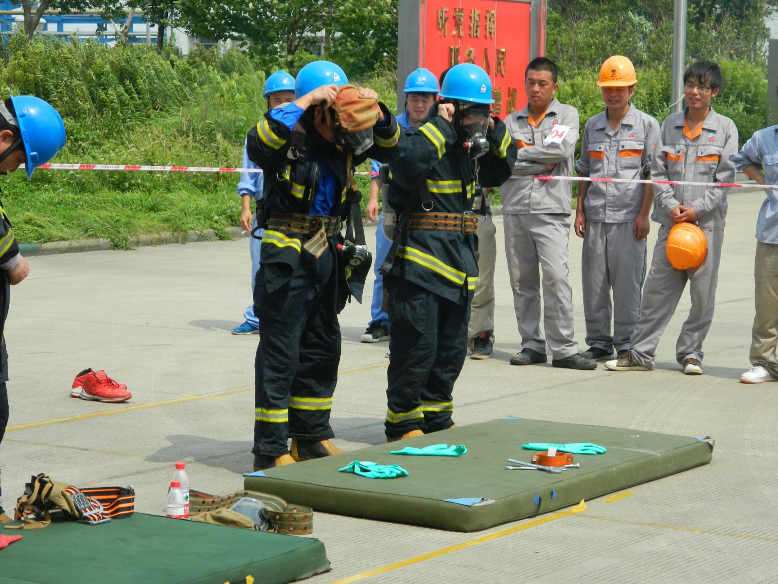 这次比赛除了保留历届应急处置技能比赛的油桶灭火、伤员现场急救、三人三带接力出水击靶、空气呼吸器佩戴和两人着防护服堵漏等传统项目,还新增加了红十字会救护项目(三角巾头部帽式包扎和前臂闭合性骨折固定)。经过一天紧张有序的比赛,公司各位选手不畏骄阳,奋勇争先,齐心协力的完成了各项比赛。虽然最后没能获奖,但各位选手的积极努力没有白费,各项成绩相比去年都有了显著的提高。