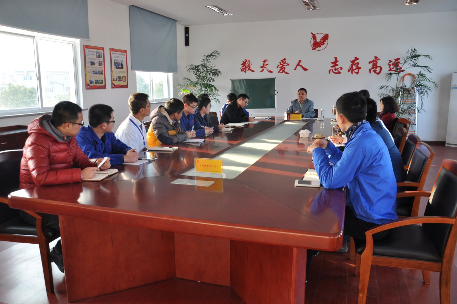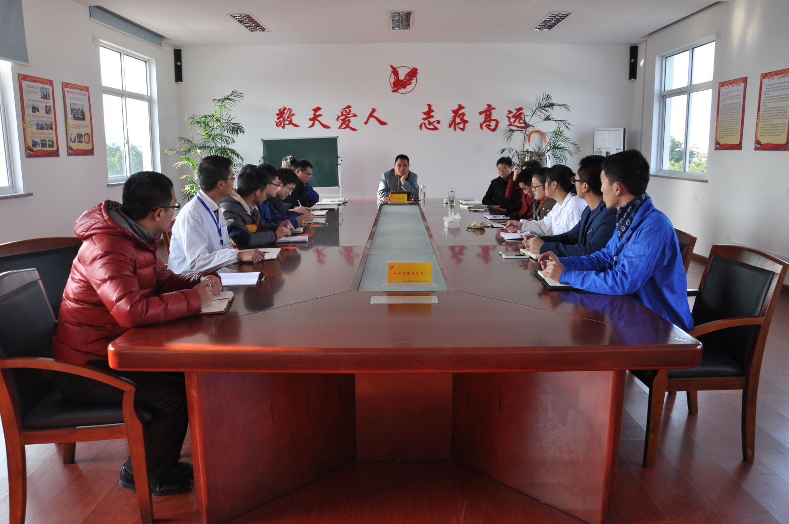 会议首先由张总向在座各位的大学生介绍了企业2016年度的经营目标和企业发展的方向,鼓励大学生在本职岗位上安心工作,勤奋学习,我们企业今后的发展需要人才,企业也会一如既往的重视人才,致力于发展人才。张总还提出现在公司有一个采购岗位向大学生们开放,竞争上岗,希望大学生们能珍惜此次机会。