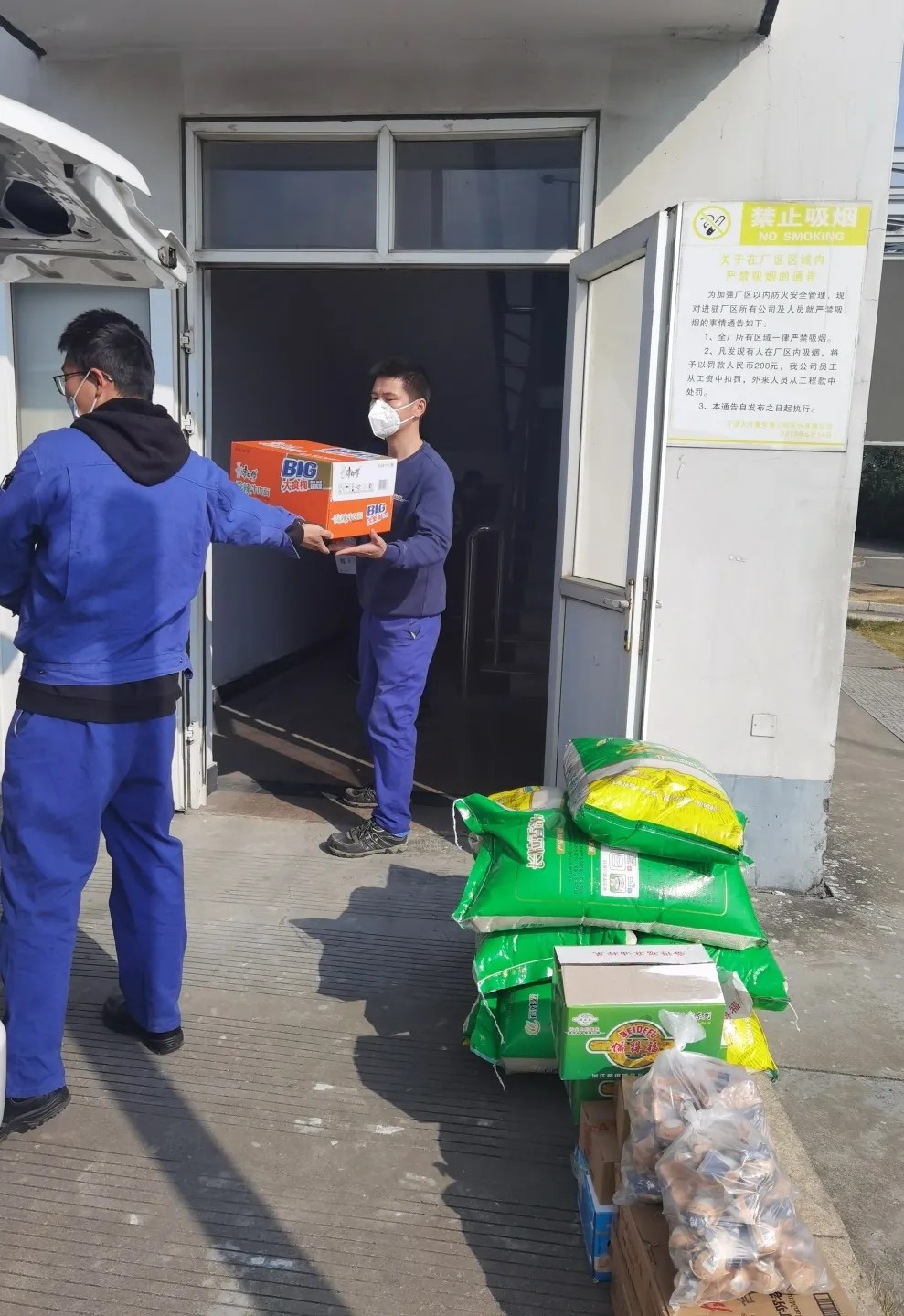 随着镇海区临时封闭管理通知的下达,公司有很多无法回家的员工,针对突发情况公司领导紧急商量对策,除了留下少部分工厂安全保障人员外,为其余员工统一安排住宿并承担所有生活起居。办公室人员接到通知立即汇总住宿员工名单及生活物品需求情况,第一时间外出为员工采办床单被褥、洗漱工具等生活用品,保障了住宿员工的生活需求,替员工解决生活难题,让员工感受到大家庭的温暖。
