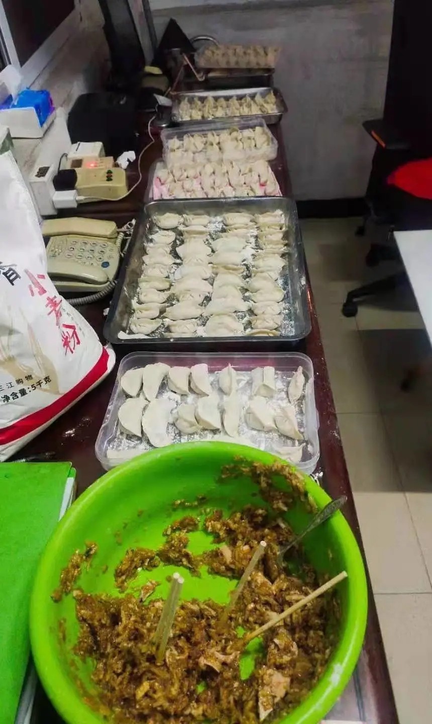 因为疫情原因,伙食成了一大难题,员工汪美红和于亚英充当了临时厨师,负责大家的一日三餐,每天早上六点多就起来烧水洗菜。包饺子、做南瓜饼、炒方便面、煮挂面、尝试不同菜系,每天变着花样为值守的员工做好每一顿饭。“只要大家吃的开心,我们就开心。”阿姨们脸上满是笑容。我们歌颂每一位冲锋在前的勇士,也感谢每一位默默提供后勤保障的员工,抗击疫情,我们在一起!