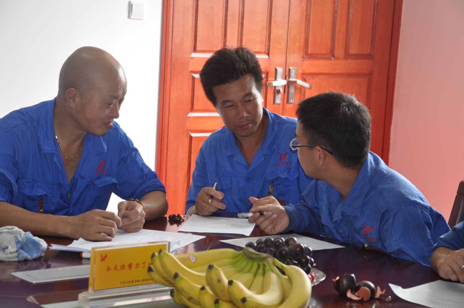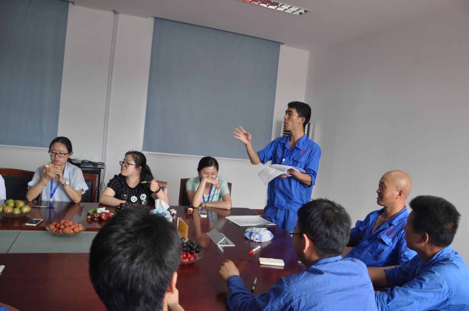 2015年6月30日下午2点,质量安全知识竞赛正式开始。首先进行的是长达50分钟的统一试卷做题环节,各个小组成员之间互相讨论、认真作答。答题结束后,竞赛裁判洪吉现场批阅试卷,并将各组的得分登记在了黑板上。由于各个小组成员准备很充分,因此在第一轮环节中各组分数相差不大,于是第二环节的抢答题就成了获胜的关键。抢答题开始后,各组成员都十分积极,纷纷举手抢答,现场氛围十分热烈。经过一番激烈的比拼,抢答环节结束,裁判对前两个环节的分数进行了统计,结果802车间和803车间分数相同,打成了平手。因此裁判组临时决定继续加赛一题,由两个小组成员分别回答。最终802车间小组以微弱的优势答对了最后一题,获得了质量安全知识竞赛的冠军。