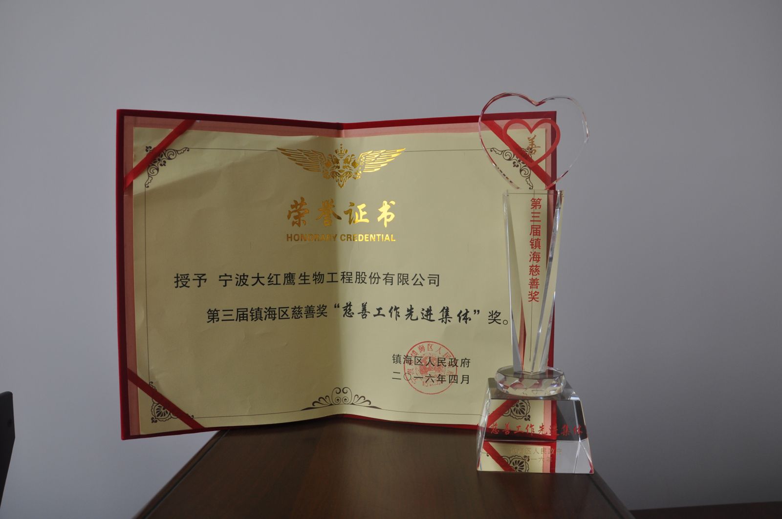 为大力倡导团结互助,爱心善举的良好风尚,褒扬在济困扶贫、扶老助残以及扶助公益事业等慈善领域作出贡献的集体和个人,2016年4月8日,在镇海区政府会议室召开了表彰2013-2015年度第三届镇海区慈善奖,我公司荣幸被评为慈善工作先进集体。