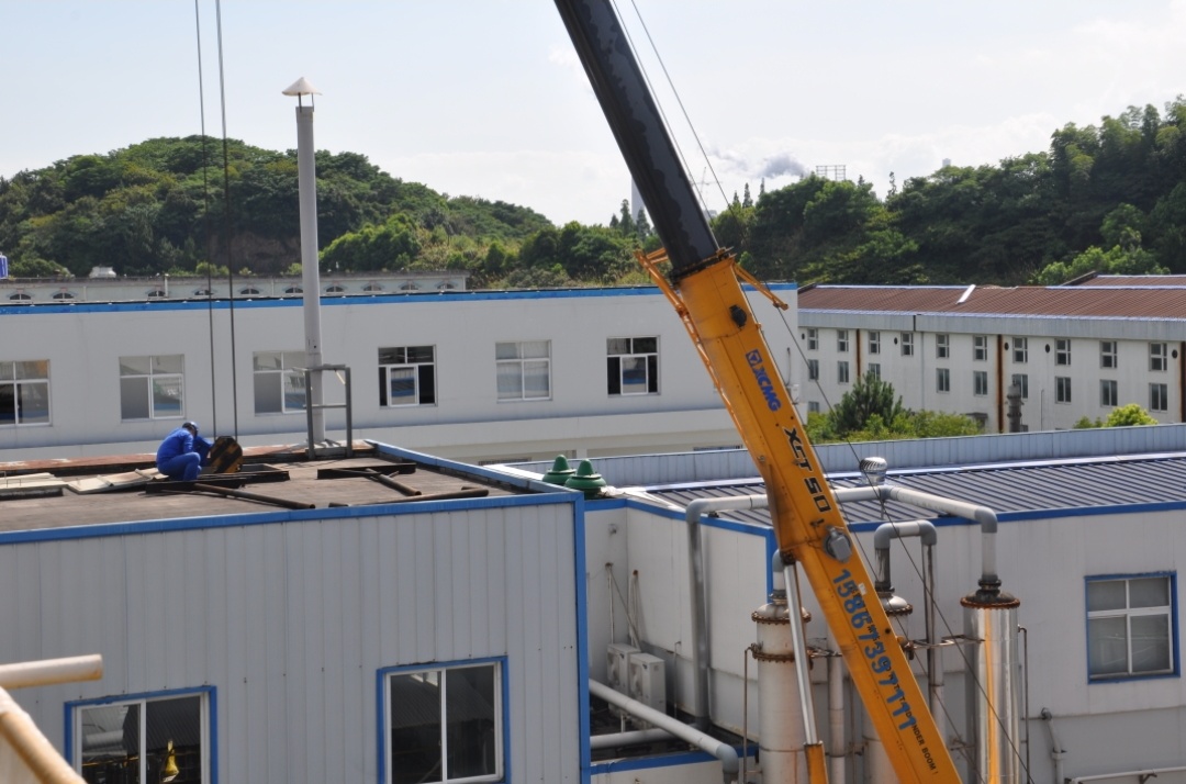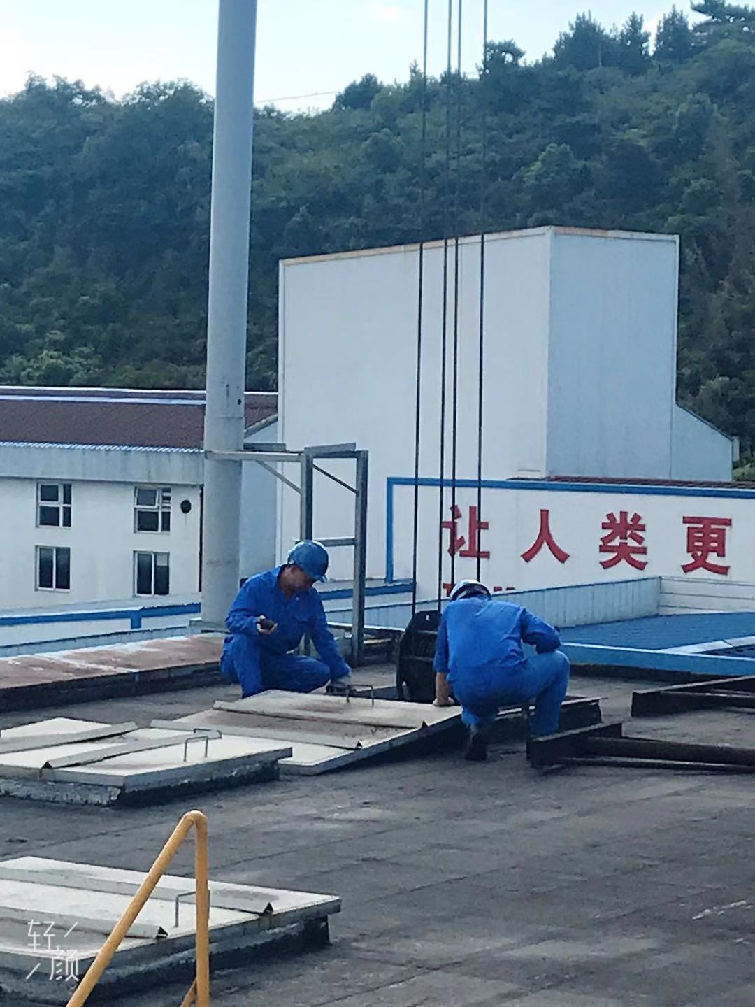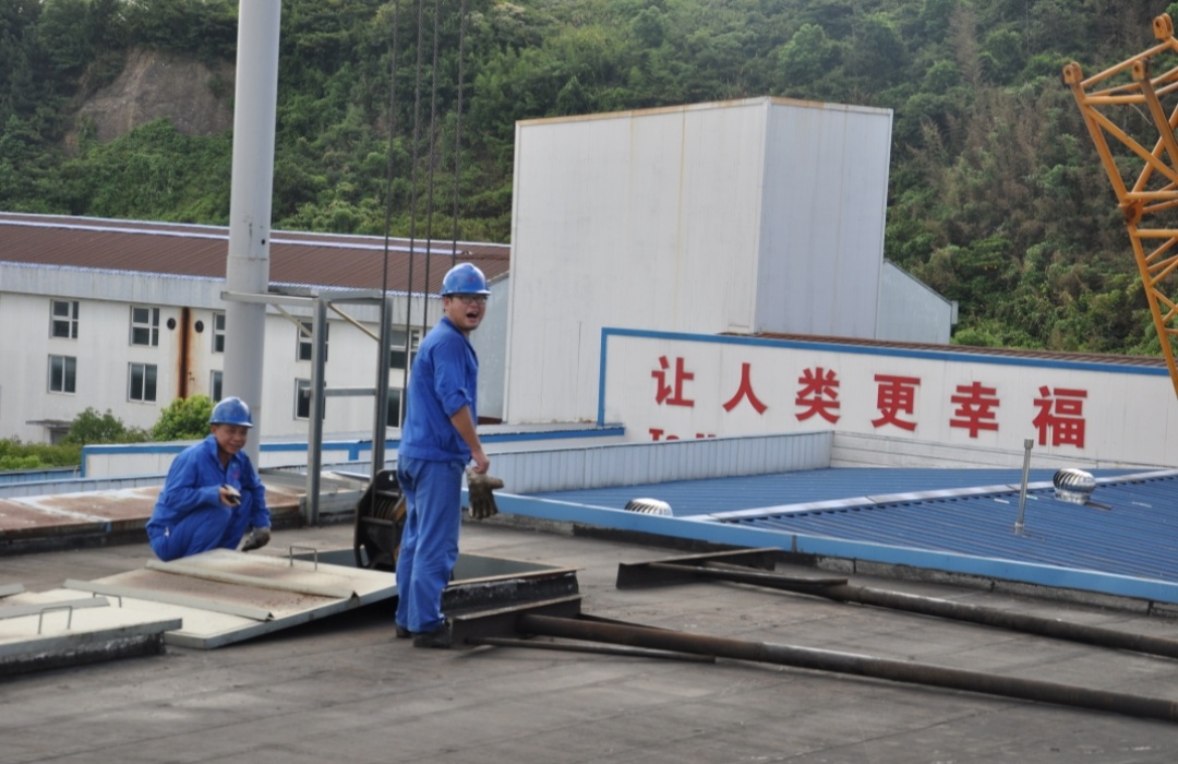 由于有新设备需要更新换代,我们的同事们直接上了生产楼顶进行工作,直面太阳的暴晒,汗水湿透了工装但他们依旧坚定毫不畏惧。这是我们生产工作人员对不怕苦不怕累精神最好的诠释。