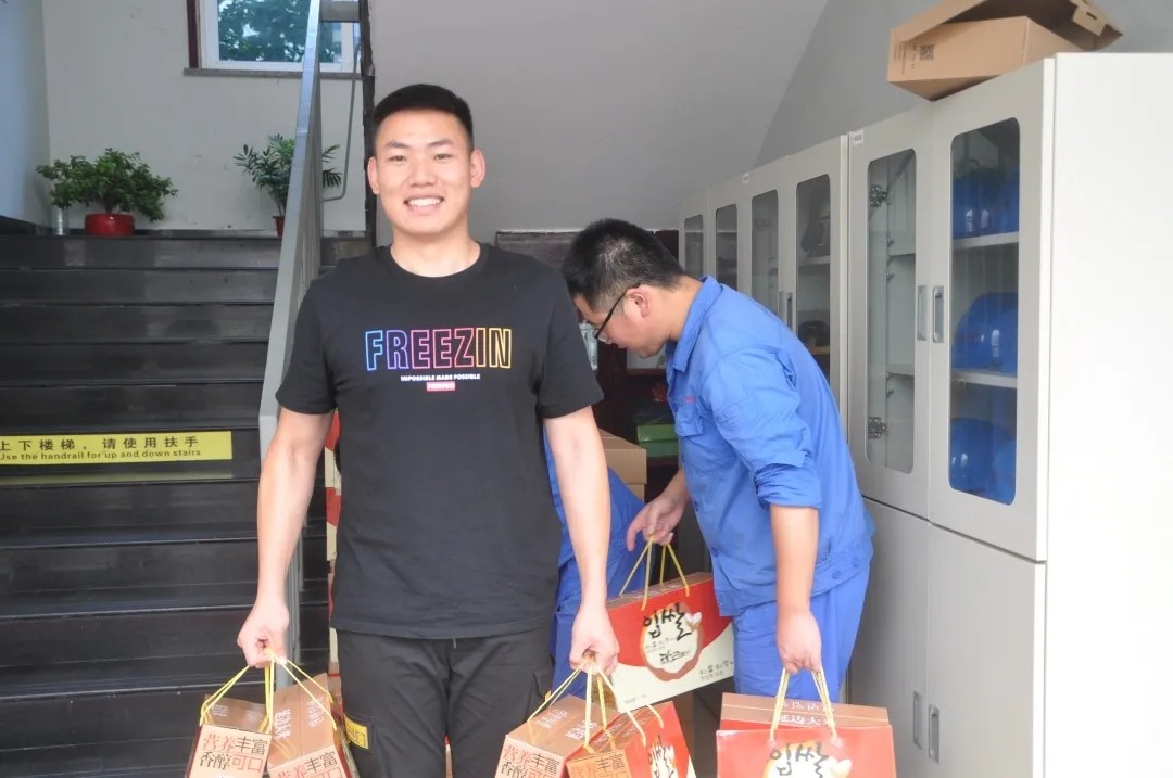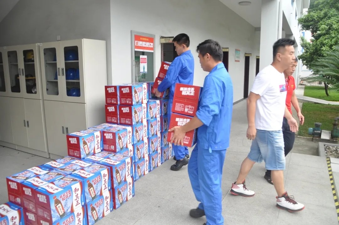 8月4日中午,石化区总工会的王茂祥主席亲自带队对我司进行了高温慰问,给我司送来了“清凉”,一箱箱和其正从车上卸下,总工会用他们的独特的方式给我司冒高温、战酷暑的员工们带来关怀和温馨,送上夏日里的清凉,希望大家在炎炎夏天也能感受到一份来自内心凉爽和惬意。在给员工们发放和其正时,中层领导干部纷纷主动提出放弃,他们表示战斗在生产一线的员工们更需要这份“清凉”,希望让每位一线员工能得到两箱和其正,获得双倍的“清凉”。
